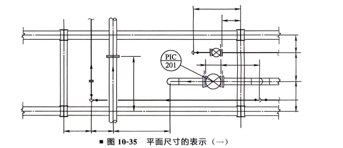 ⑧. 小口徑管線(xian)、管件、閥門和儀表(biao)的尺寸標注如圖(tu)10-42所(suo)示。