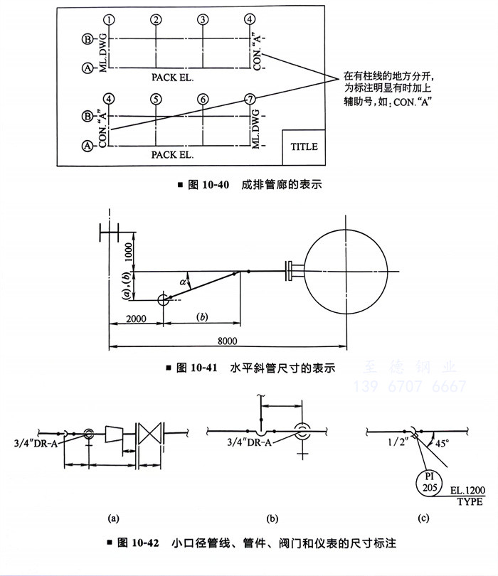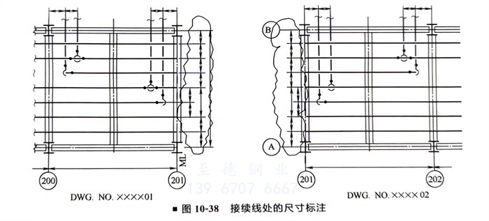 c. 與(yu)其他圖(tu)(tu)相接的(de)管(guan)線,在接續線處的(de)尺寸(cun)在每(mei)張圖(tu)(tu)上以(yi)同樣的(de)方法表示(圖(tu)(tu)10-38)。