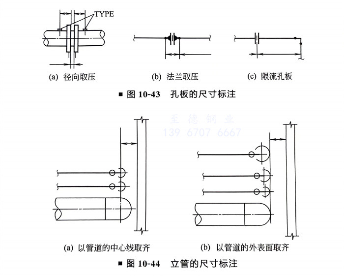 ⑩. 立管的尺寸(cun)標注如圖10-44所示。