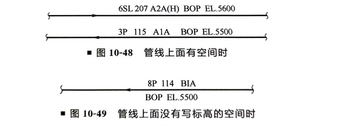 ①. 如果標高(gao)不能(neng)與管線平行(xing)書(shu)寫(xie),可按(an)圖(tu)10-46所示的形式表示。