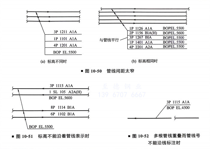 ①. 在表示管道(dao)上的管線號、標高(EL)和流向箭頭(tou)時,應注意為梁上的管架號留(liu)出(chu)空間。